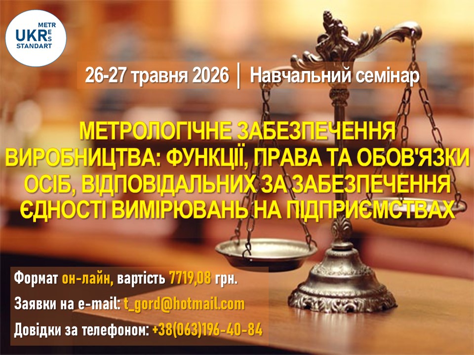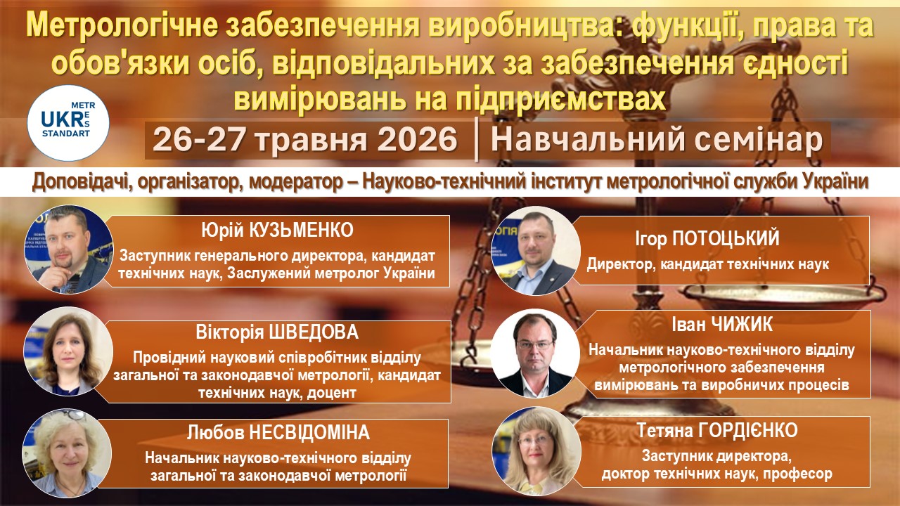 ДП «УКРМЕТРТЕСТСТАНДАРТ» запрошує взяти участь у навчальному семінарі за темою: "Метрологічне забезпечення виробництва: функції, права та обов'язки осіб, відповідальних за забезпечення єдності вимірювань на підприємствах"