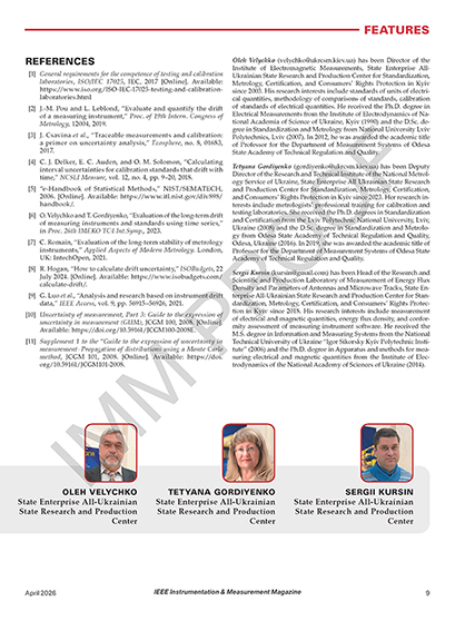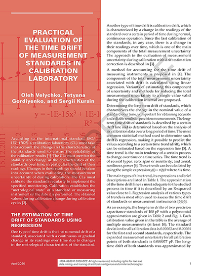 У квітні 2026 року в міжнародному журналі IEEE Instrumentation & Measurement Magazine (IMM) (США) опубліковано статтю «Практична оцінка часового дрейфу еталонів вимірювань у калібрувальній лабораторії» (Practical evaluation of the time drift of measurement standards in calibration laboratory, том 29, № 1). Авторами публікації є Олег ВЕЛИЧКО, д.т.н, проф., Тетяна ГОРДІЄНКО, д.т.н, проф. та Сергій КУРСІН, к.т.н.